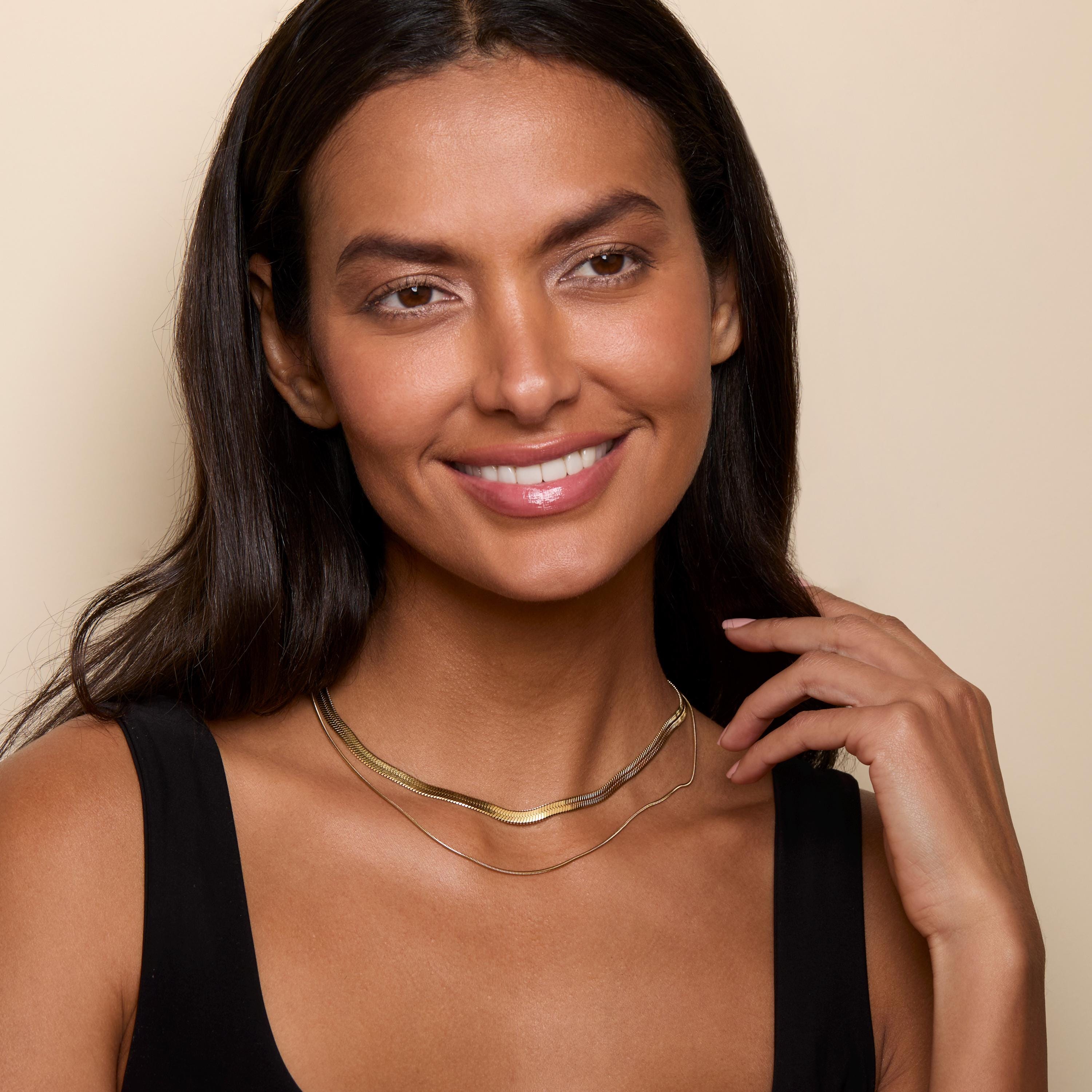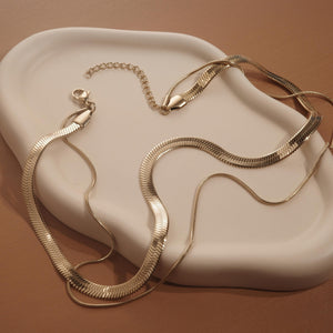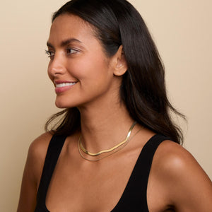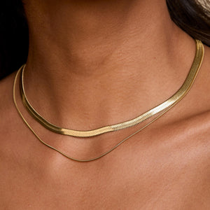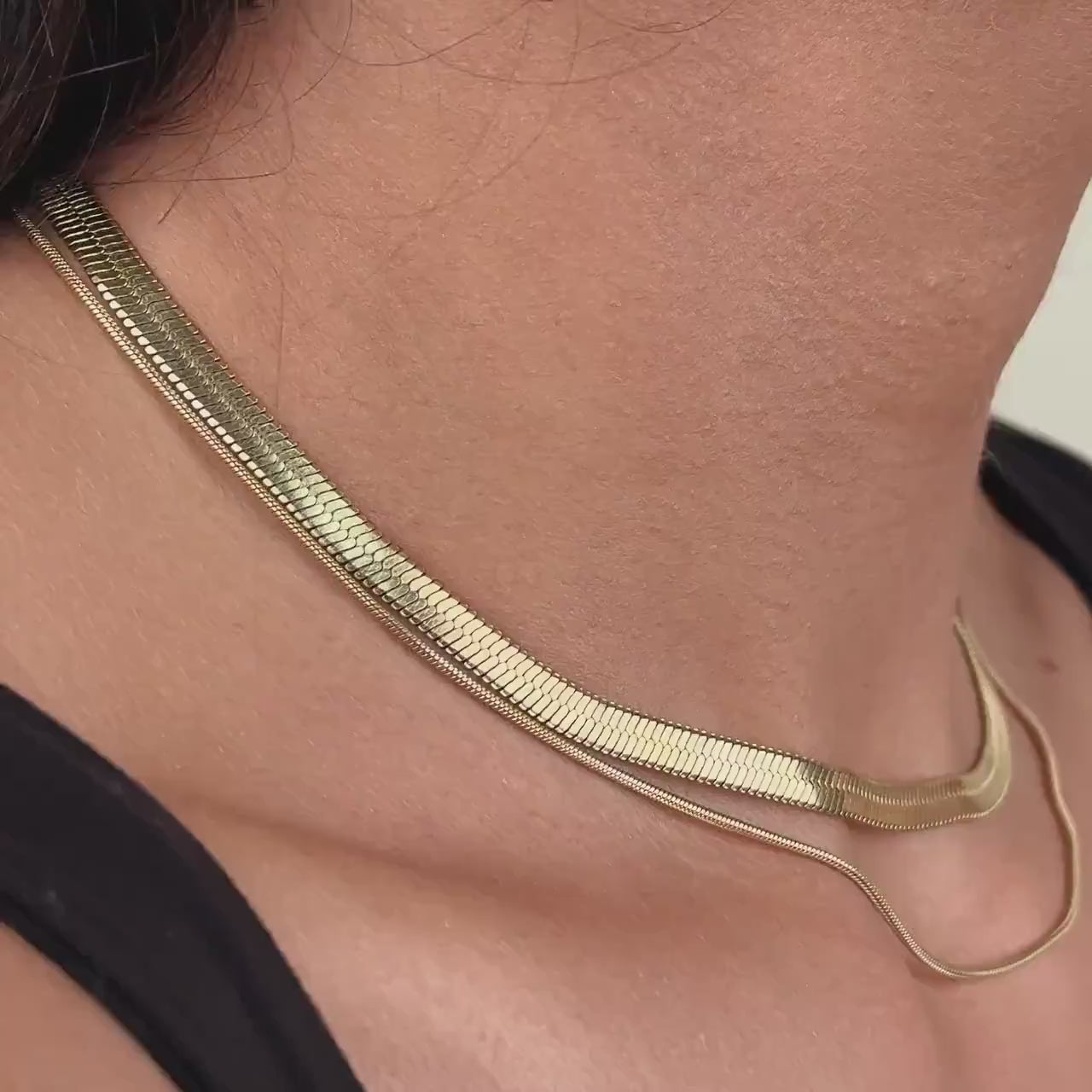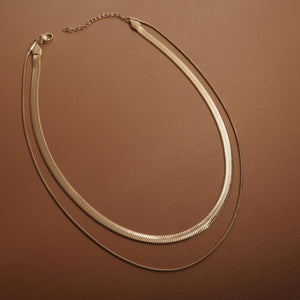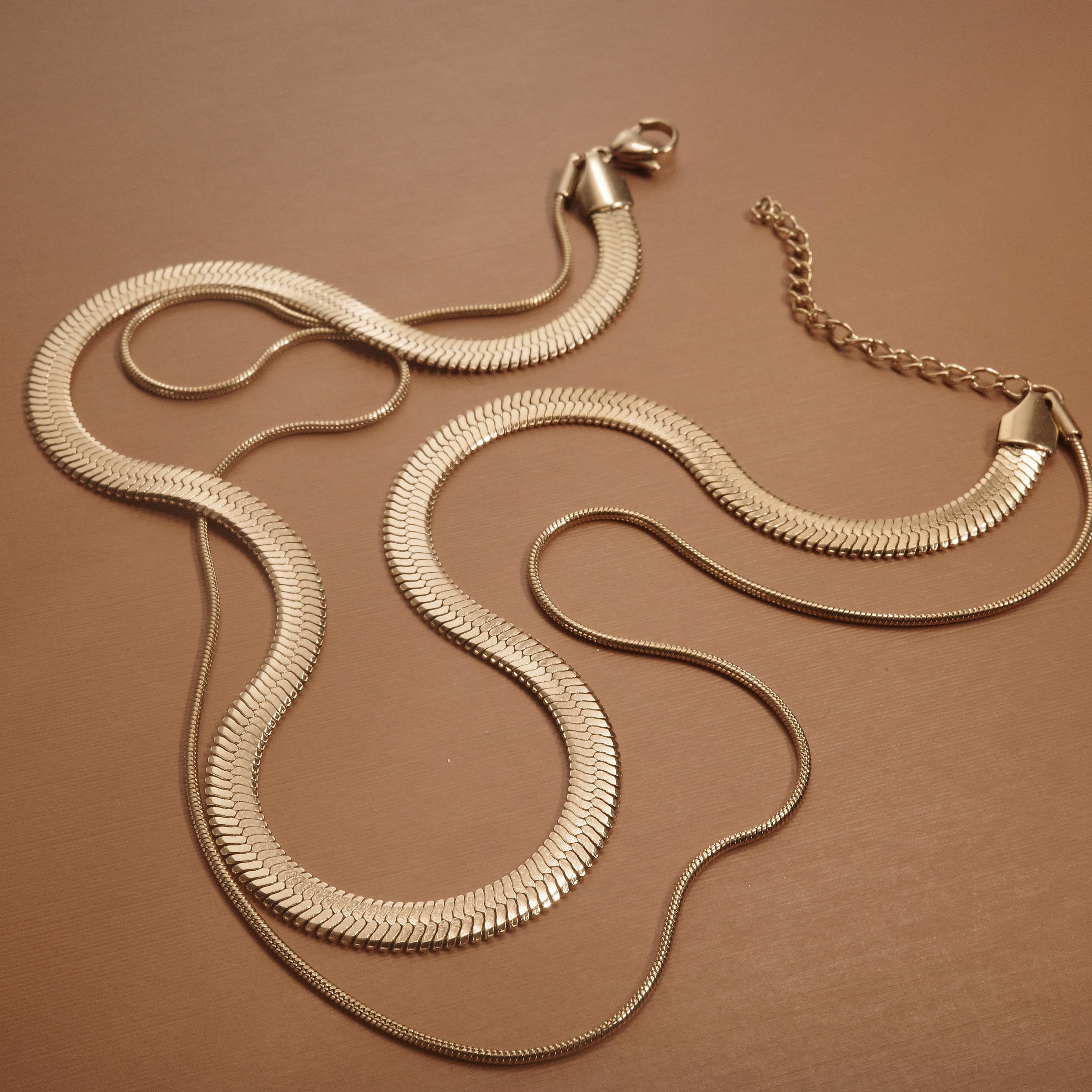 18K Gold Filled Layered Herringbone and Snake Necklace