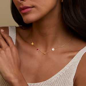 Personalized Initial Birthstone Charm Necklace - Your Story in Beautiful Gold