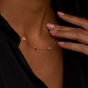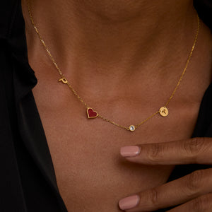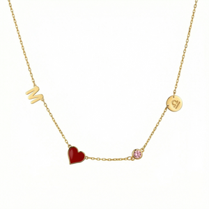Start by picking zodiac signs that are important to you. Choose initials for your kids, spouse, parents, or friends. The red heart charm shows love, while sparkling stones make your look shine. Many moms pick their own initial plus their children’s birthstones for a one-of-a-kind mother’s necklace. 💕