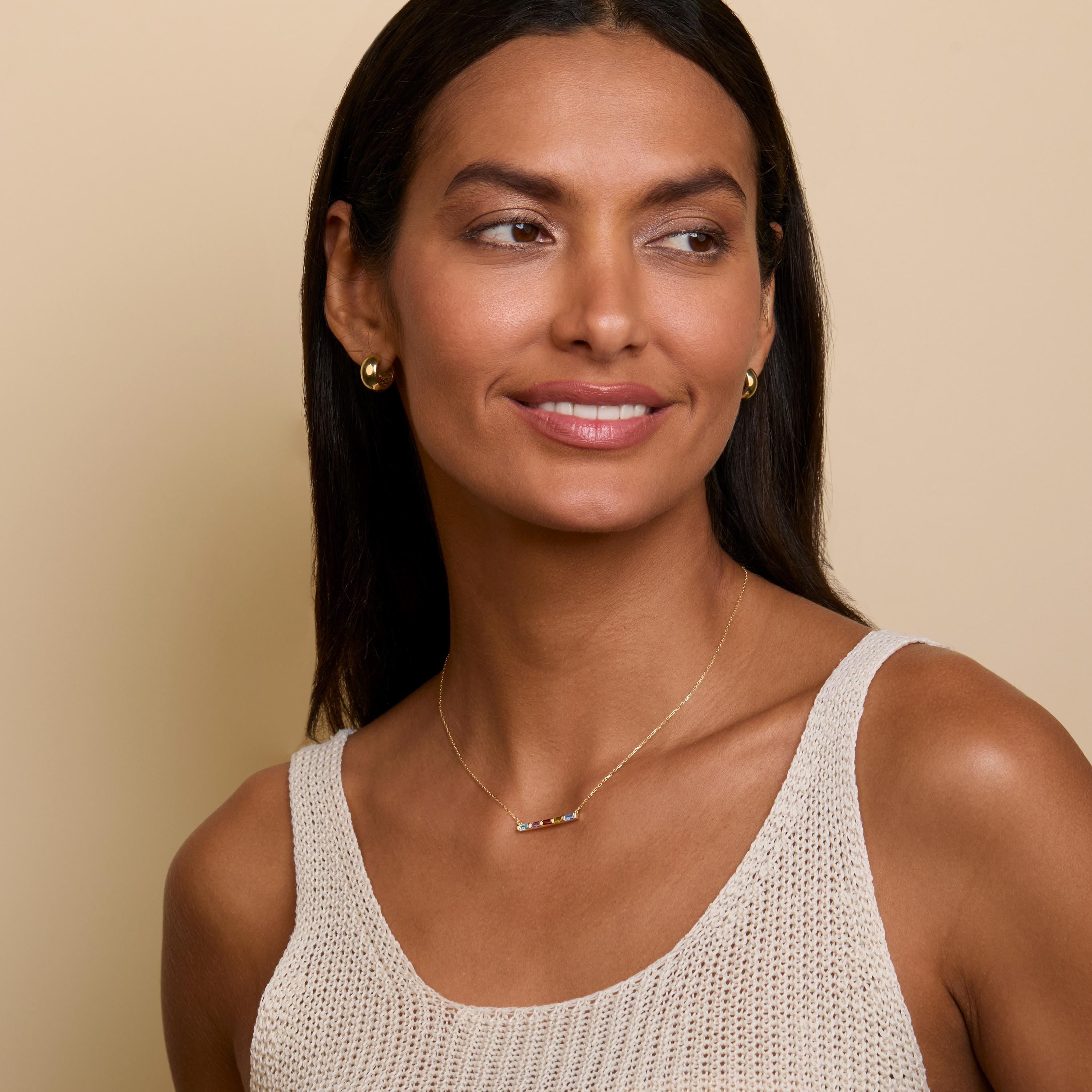 Beautiful Rainbow Bar Necklace - Colorful Gemstone Jewelry for Women