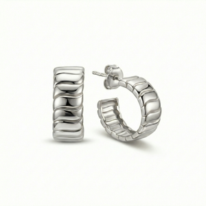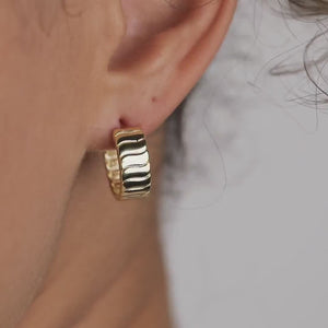 Slip these architectural gold hoop earrings on and feel the immediate transformation. The structured ribbed design catches light in mesmerizing ways, creating a bold statement that feels surprisingly lightweight against your skin. Crafted from luxurious 18K gold vermeil, these aren't just earrings—they're the subtle confidence boost that makes you stand taller, smile wider, and embrace the day with renewed energy. There's power in adorning yourself with pieces that speak to your strength and uniqueness.