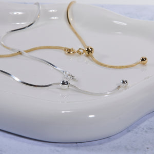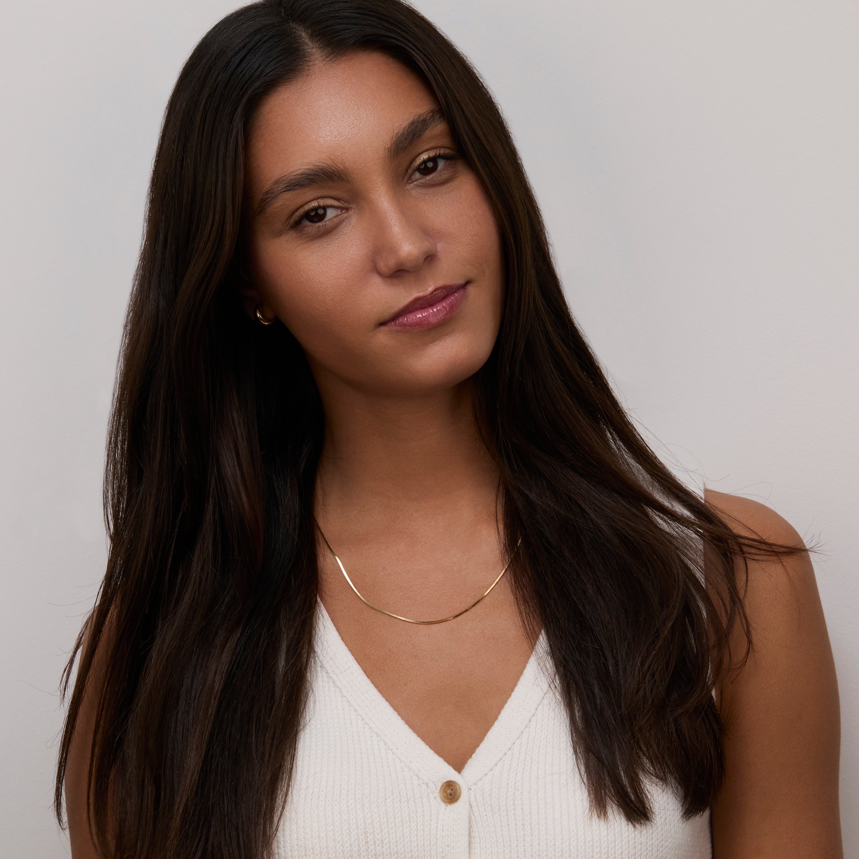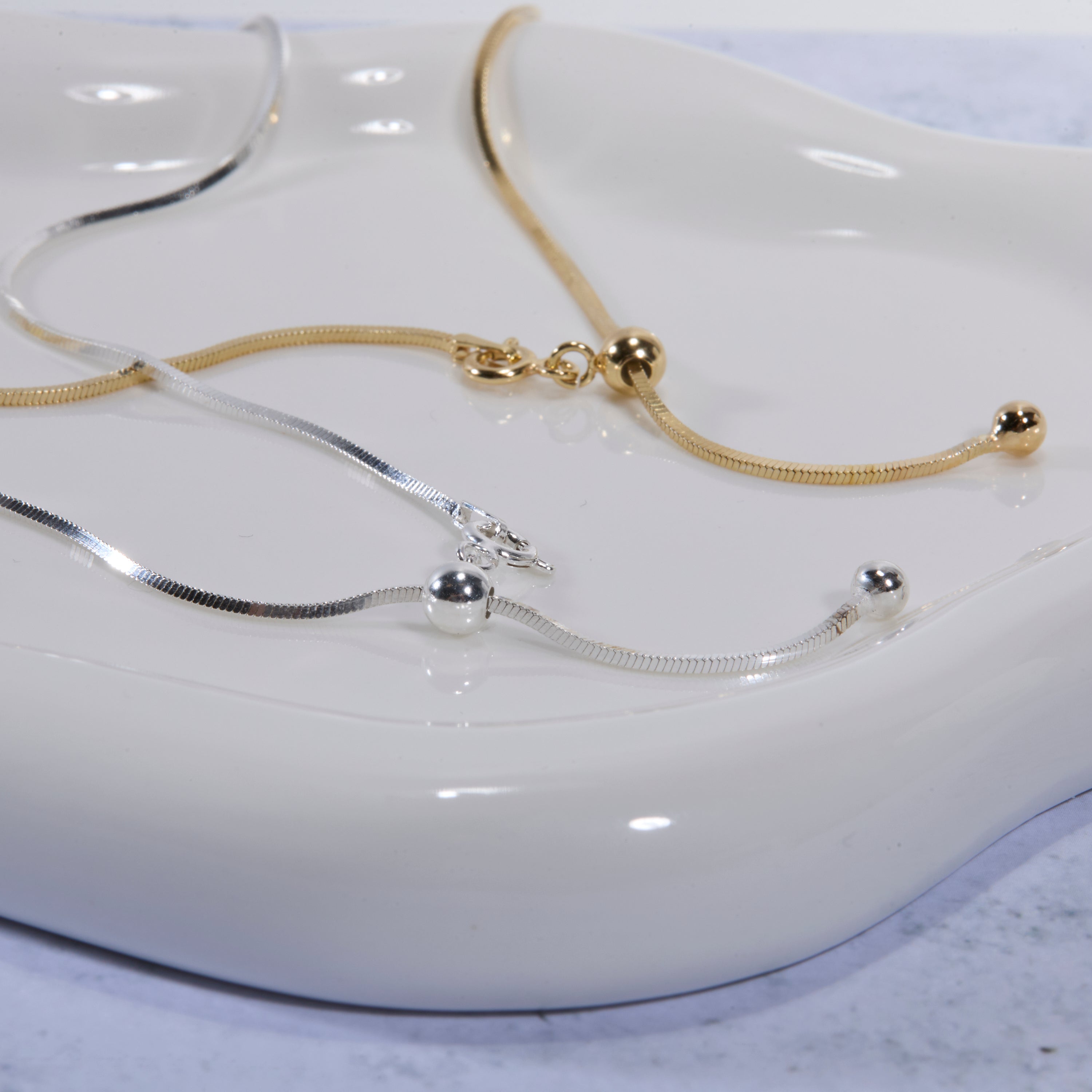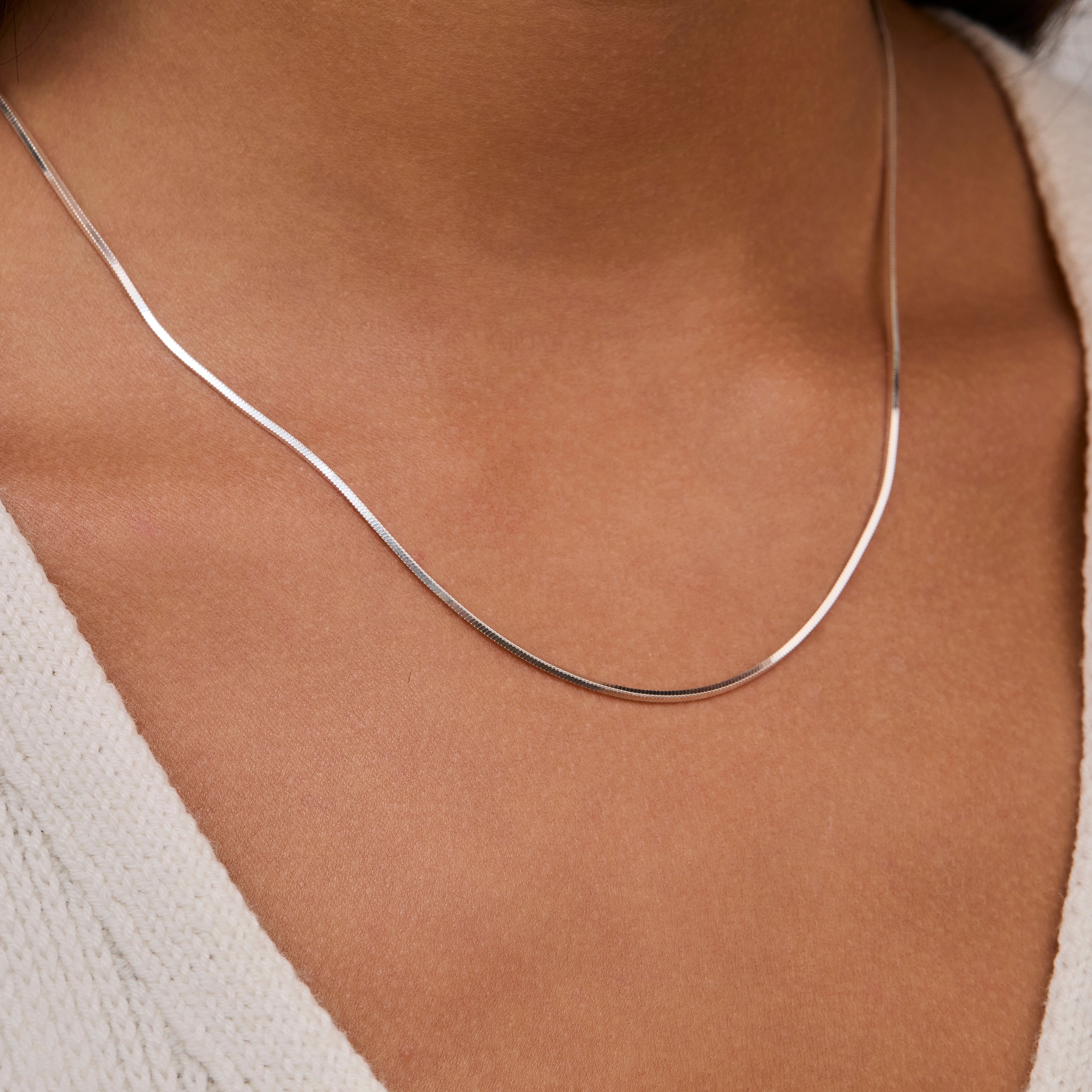 Adjusting your box chain is simple and intuitive. Hold the clasp between your thumb and forefinger and smoothly glide it along the chain to your desired position. The clasp stays securely in place once positioned. For the perfect length, try the necklace in front of a mirror and experiment with different positions. The smooth design ensures the clasp slides effortlessly without catching or damaging the links.