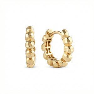 Feel the quiet confidence that comes from wearing something truly special. These gold huggie earrings embrace your earlobe with a delicate row of golden spheres that catch and scatter light with your every movement. The sensation is subtle yet transformative – like the first sip of champagne that signals the beginning of a celebration. As these dainty gold hoops nestle against your skin, they become more than accessories; they're your secret companions celebrating the beauty in your everyday moments.