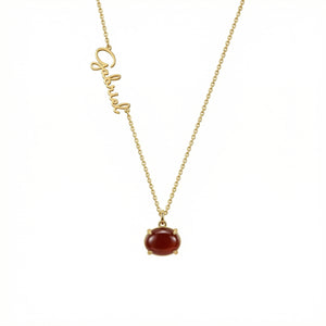 Show the world who you truly are with our stunning carnelian necklace crafted in luxurious 18K Gold Vermeil. This eye-catching piece showcases a deep red carnelian stone that glows with warmth and vitality, beautifully matched with your name or initial in flowing script. The result? A one-of-a-kind pendant that blends the natural magic of gemstones with your personal story.