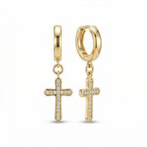 Our gold cross earrings offer the ideal blend of meaning and style. The secure huggie design ensures comfortable all-day wear while the dazzling pave crystals add just enough sparkle to elevate any outfit. Love how they bring a touch of faith to your everyday elegance.