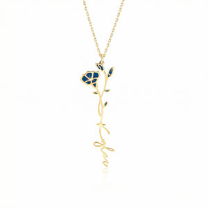 Express your unique identity with our exquisite custom necklace crafted in luxurious 18K Gold Vermeil. This stunning birth flower jewelry features your name elegantly scripted alongside your birth month flower, creating a meaningful pendant that symbolizes both your personality and the natural beauty associated with your birth month.