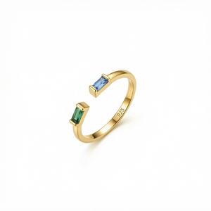 Unlike standard birthstone rings that often feature round or oval stones in traditional settings, our Double Baguette design offers a distinctly modern aesthetic. The elongated rectangular cut of the baguette stones creates a sleek, architectural look while providing maximum color display. The minimalist setting allows the vibrant birthstones to take center stage without unnecessary embellishment.