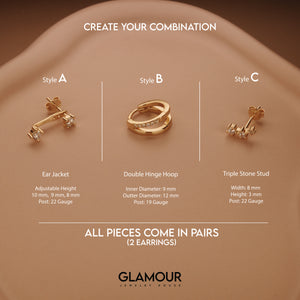 Double Hinge Hoop Ear Jacket Set - 18k Gold Vermeil