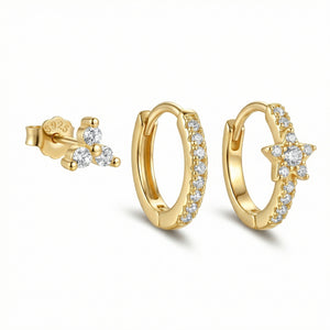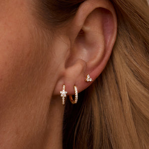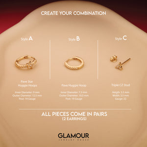 - Three fun styles: Pave Star Huggie Hoops, Pave Huggie Hoop, and Triple CZ Stud