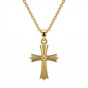 This elegant cross necklace features a beautifully crafted pendant in luxurious 18K gold vermeil with a classic design that balances tradition with contemporary style. The slender silhouette and refined details create a meaningful piece that's both symbolic and fashionable. Each cross in necklace is thoughtfully proportioned to be noticeable without overwhelming, making it perfect for everyday wear while still being special enough for meaningful occasions and celebrations.