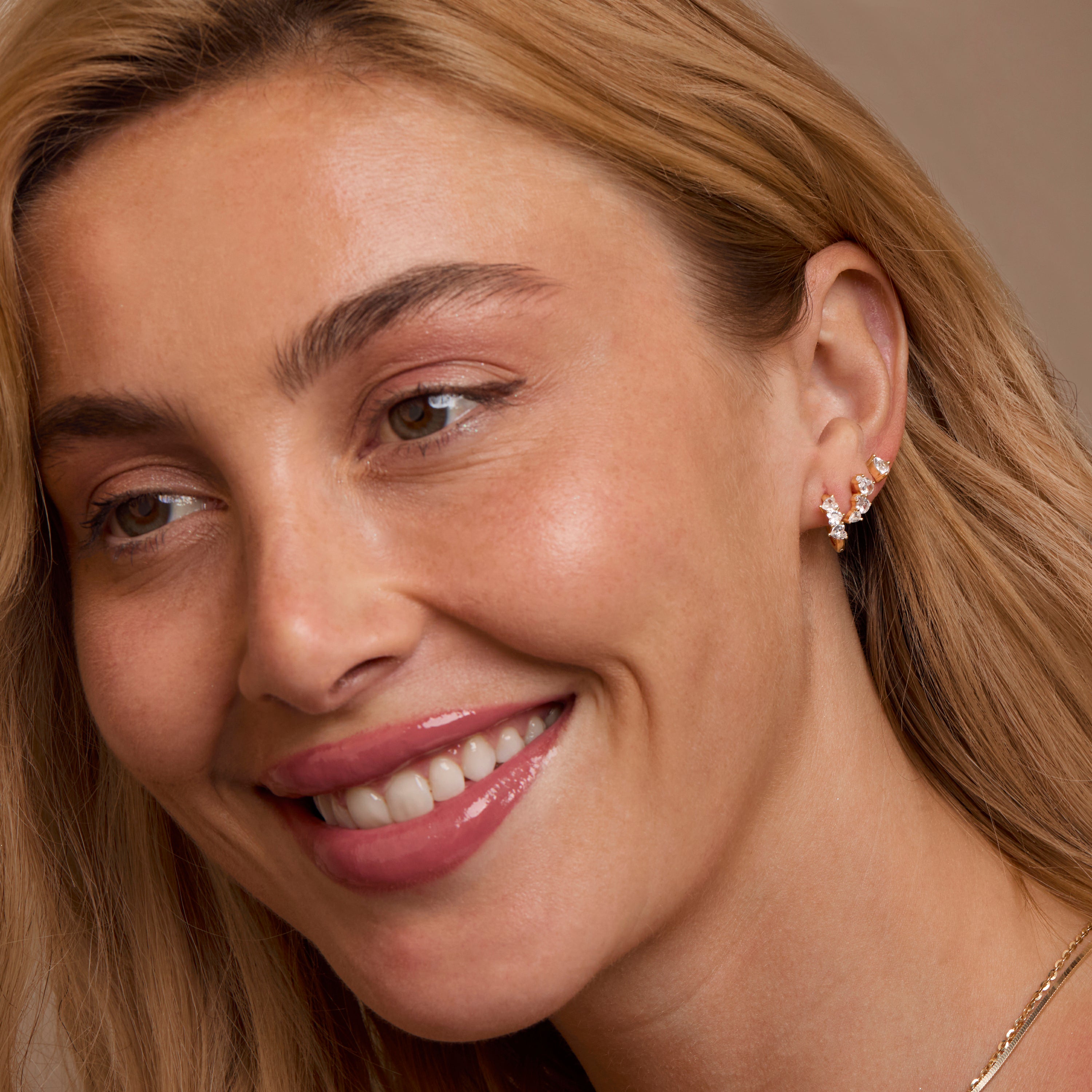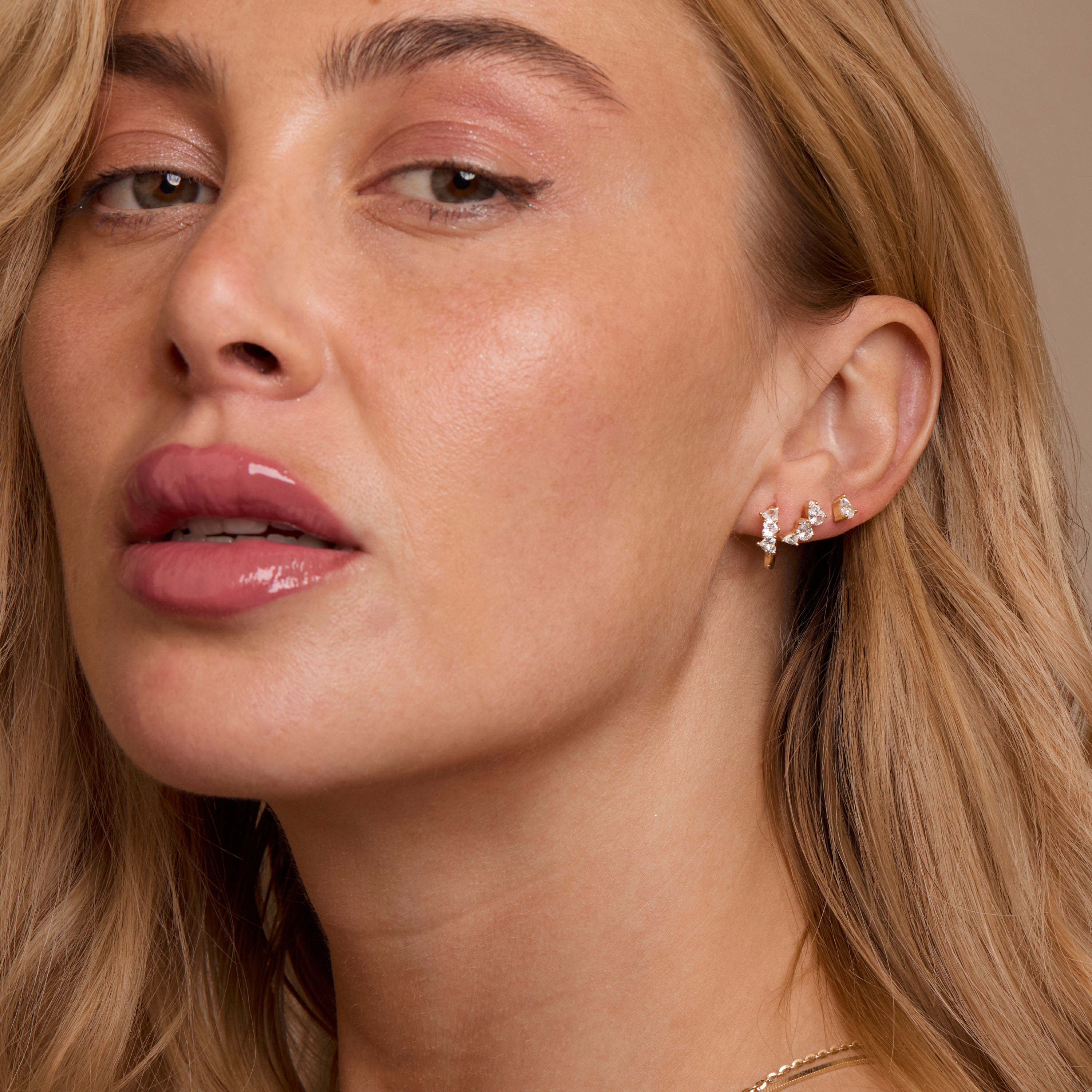 Absolutely! That's the beauty of this collection. Create asymmetrical looks by wearing different styles in each ear, or use multiple pieces in one ear for a curated ear stack. The coordinating gold finish ensures all pieces work harmoniously together. Experiment with different combinations to express your personal style.
