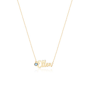 Our birthstone jewelry combines delicate craftsmanship with meaningful personalization. The flowing script of your name is complemented by a sparkling birthstone that adds color and significance to this dainty jewelry piece.