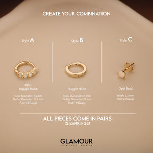 Opal Huggie Hoops & Stud Earring Set - Stunning Gold Jewelry Collection