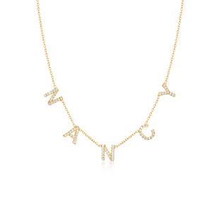 Name necklaces carry significant personal meaning that mass-produced jewelry simply cannot match. By featuring someone's name or initials, you're creating a one-of-a-kind treasure that celebrates their identity. The pavé diamond setting elevates this personalization with a touch of luxury that shows thoughtful consideration.