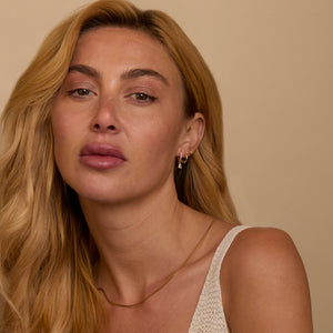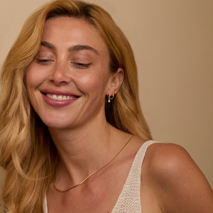 Pick 18K Gold Vermeil for the best quality — real 18K gold over .925 sterling silver. It lasts 2+ years, is safe for sensitive skin, and comes with a 2-year warranty. Or choose Prestige Gold for a lower price — same gold look, great for everyday wear.