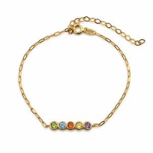 This versatile bracelet transitions seamlessly from casual to formal occasions. Perfect for everyday wear, with gemstones that add sophistication for special events. Layer with a watch or bangle for elevated style, or wear solo to showcase its sentimental significance. The sleek chain provides a contemporary backdrop that allows your colorful birthstones to captivate with every movement.