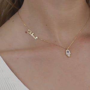 Personalized Hamsa Name Necklace - 18K Gold Vermeil