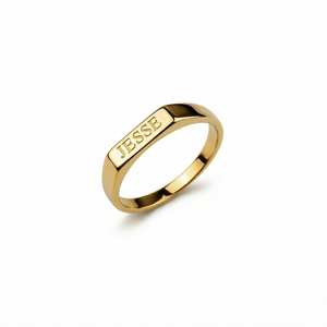 Make a statement with our beautiful Personalized Name Ring! This stunning 18K gold vermeil piece features your chosen name or word elegantly engraved on a sleek band. Each custom ring is crafted with care to create a meaningful piece that celebrates your identity or honors someone special. Wear this authentic personalized jewelry and feel more confident knowing your piece is as unique as you are!