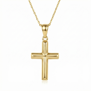This versatile cross necklace can be styled in numerous ways to complement your personal style. For a minimalist look, wear it alone with a simple V-neck or scoop neckline to showcase the pendant. The delicate design also layers beautifully with other necklaces of varying lengths for a more dimensional look. For special occasions, pair your cross necklace with matching gold earrings for a cohesive appearance. The clean lines of this design make it appropriate for both casual settings and formal events.