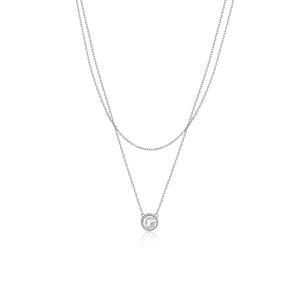 The minimalist design offers versatile elegance that transitions from day to night. The diamond and necklace combination creates a focal point that's both subtle and eye-catching, with the premium stone nestled in a protective bezel that showcases its brilliance while ensuring durability.