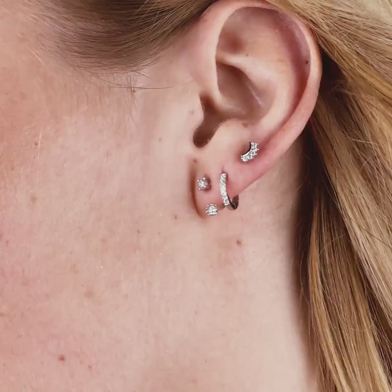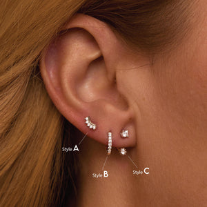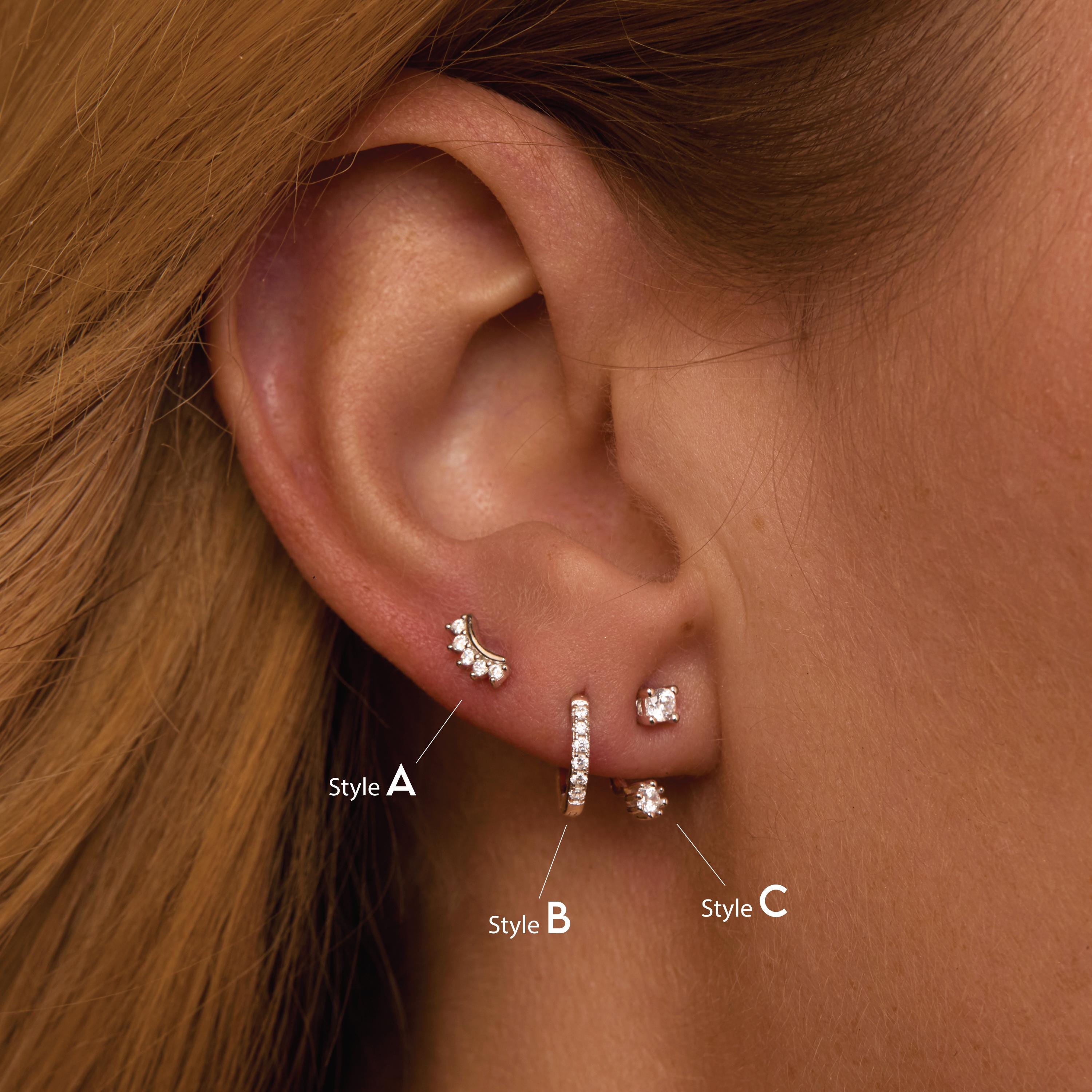 - Three versatile styles: curved studs, pavé huggie hoops, ear jackets