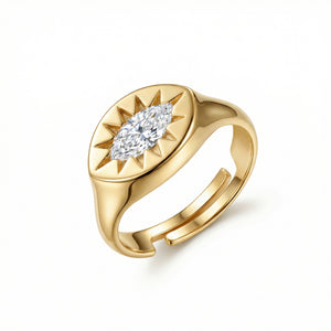 β¨ Stunning Sun Star Diamond Signet Ring - 18K Gold Vermeil