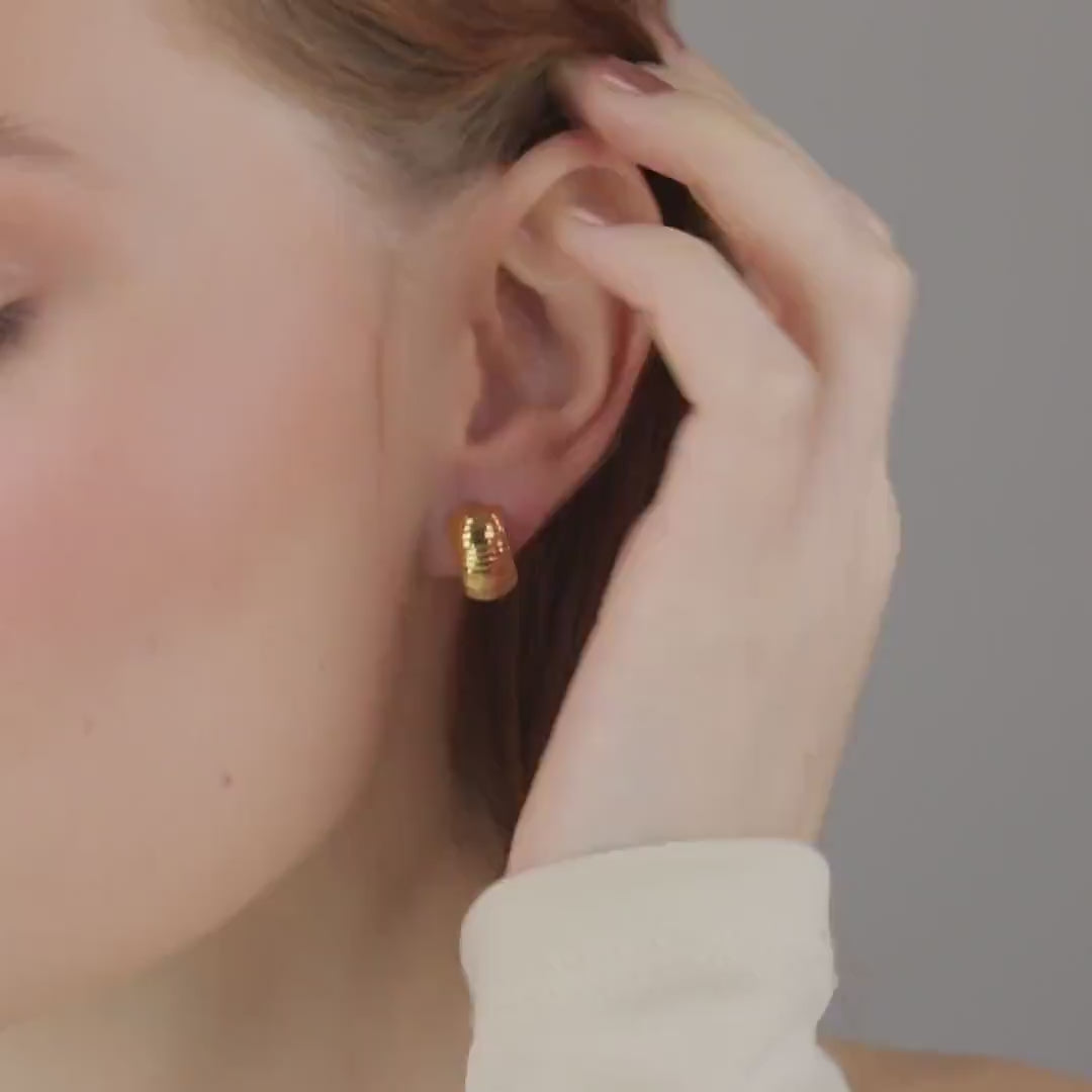 Feel stunning in our bestselling gold vermeil huggie earrings. These beautifully textured hoops hug your ears with lightweight luxury that transitions effortlessly from day to night. The distinctive ribbed design catches light beautifully, adding sparkle to every moment. Hurry - these authentic gold vermeil huggies are selling out fast!