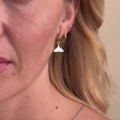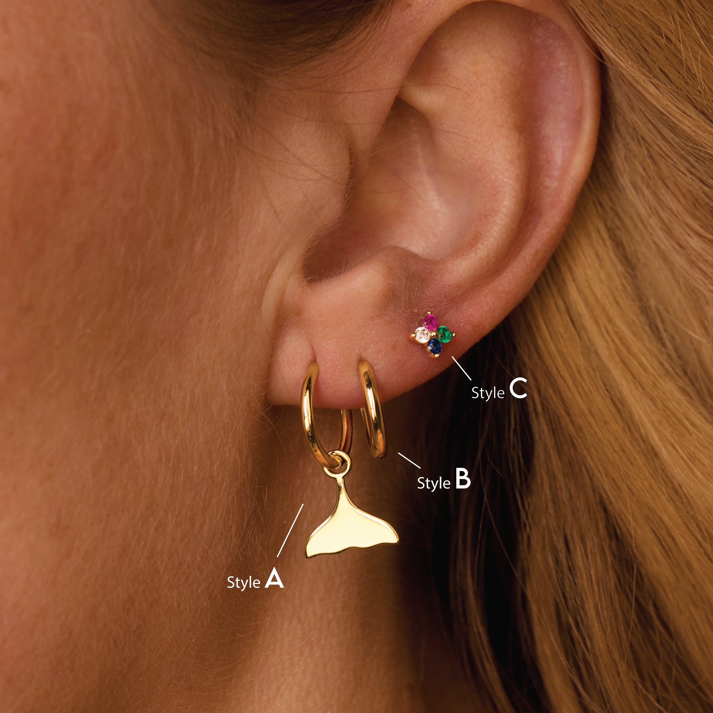 - Complete set includes huggie hoops with whale tail charms and colorful stud earrings